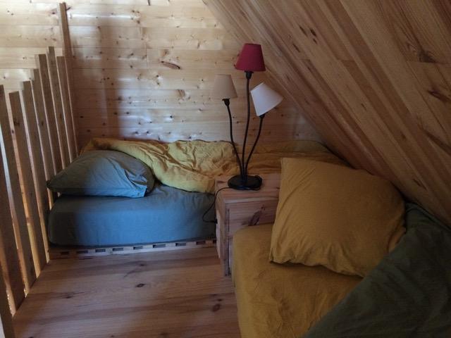 Les mezzanines, installées sous les combles, sont aménagées dans une ambiance cabane … très appréciées par les enfants et les plus jeunes, elles sont cependant moins adaptées aux adultes qui s’y sentent trop confinés et dès lors mal à l’aise …